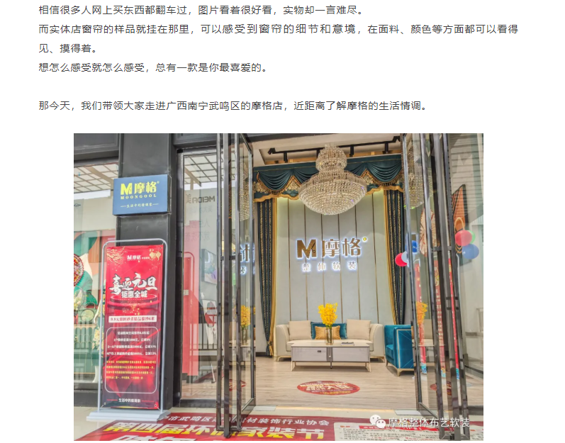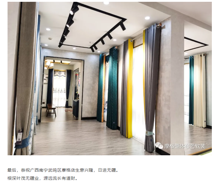 《摩格窗簾軟裝®喜訊》恭祝廣西南寧武鳴區摩格店生意興隆,日進無疆