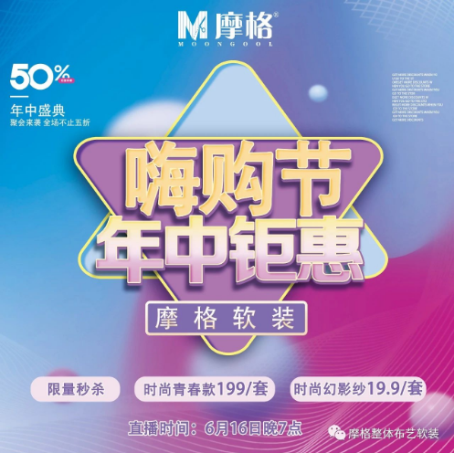 首頁>新聞中心 >摩格動態>摩格軟裝丨年中鉅惠嗨購節,限量秒殺,直播寵粉!