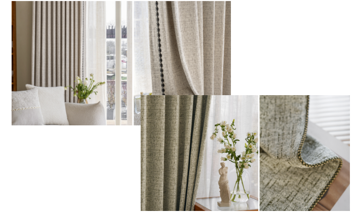 高端窗簾的魅力,往往藏在細節之中。精致的配件、人性化的設計,能大幅提升使用體驗。品質之選:靜音順滑的軌道與滑輪,開合無聲,為生活增添一份優雅從容;智能電動窗簾系統,通過手機遠程控制或語音指令,輕松實現不同時段的遮光需求,讓科技服務生活;定制的簾頭設計、手工縫制的流蘇、綁帶,每一處細節都訴說著獨特的品味與格調。